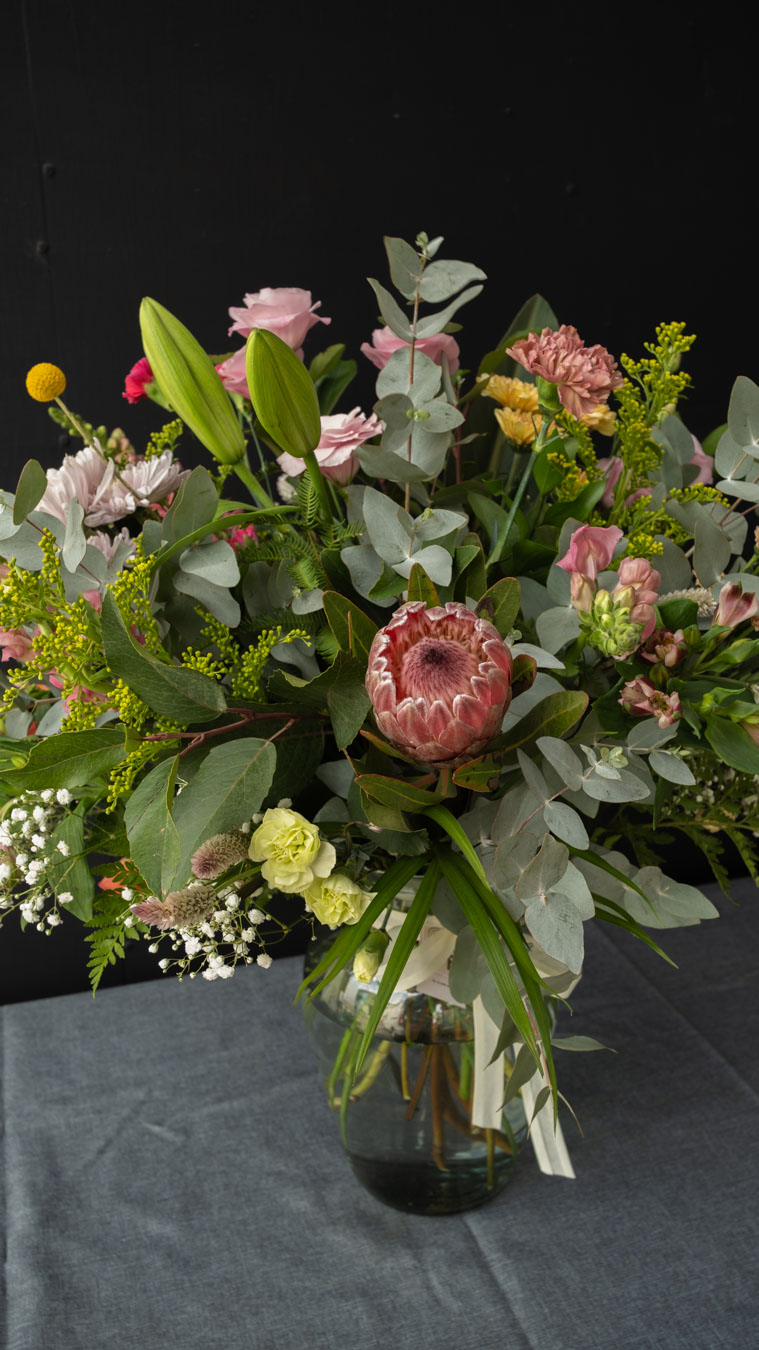 Es uno de nuestros arreglos más imponentes, diseñado para llenar con vida y color cualquier espacio especial. Confeccionado con una dedicada selección de flores y follajes, algunos nacionales y otros importados; ideal para destacar en celebraciones, regalos de impacto o decorar ambientes amplios. IMPORTANTE: algunas flores o follajes pueden variar respecto a la foto que es referencial, ya que usamos materia prima de temporada que nos llega a diario. Lo puedes pedir también en color neutro por el mismo valor o en colores personalizados con costo adicional. Alto aproximado del arreglo: 70 cm. Consulta por WhatsApp 🌸 https://wa.me/56986481528