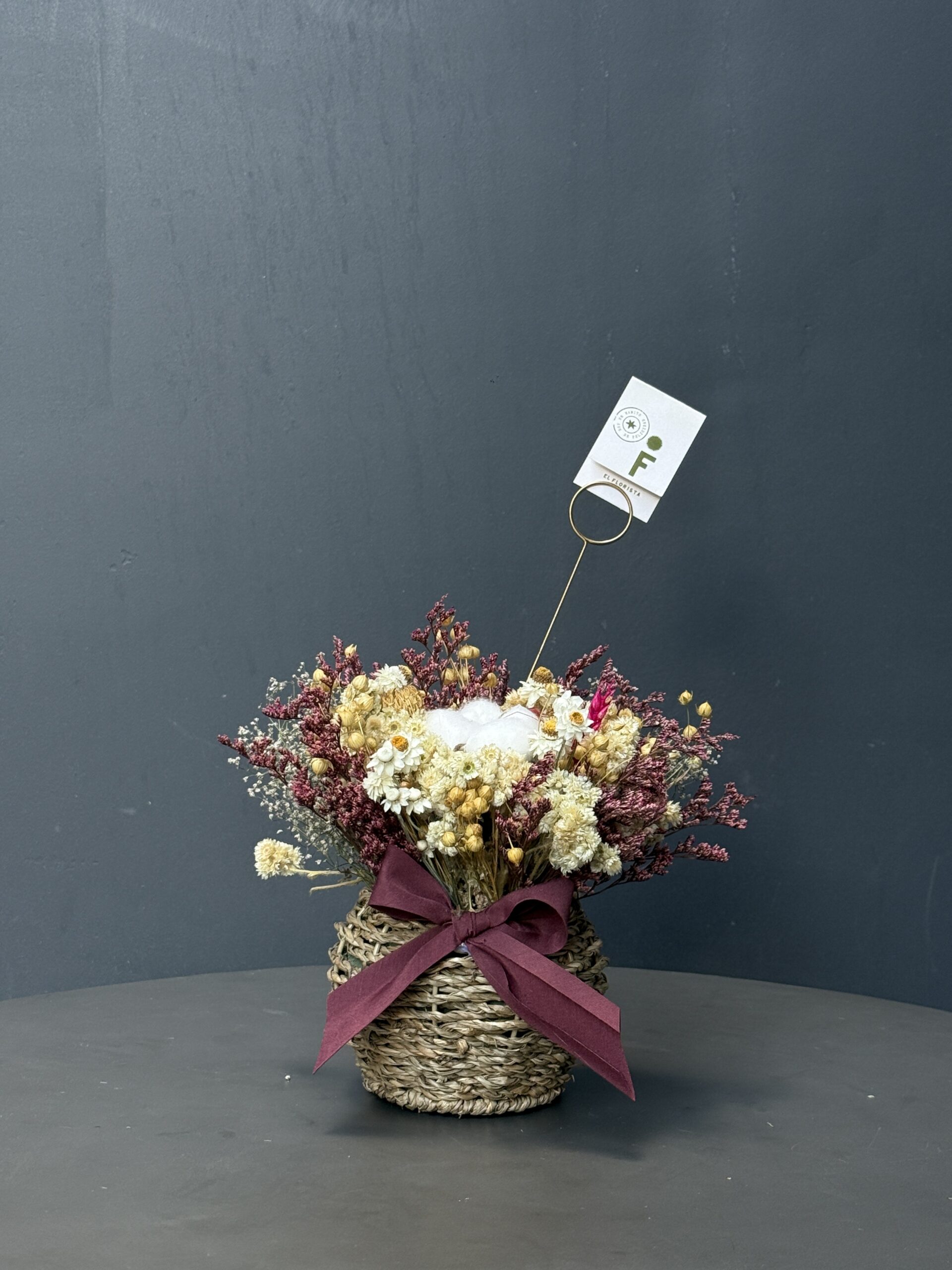 Es un arreglo que puede durar meses e incluso años, es importante que se tome en cuenta que la foto es referencial y que las flores pueden variar, tiene un algodón especial  (se mantiene paleta de colores).