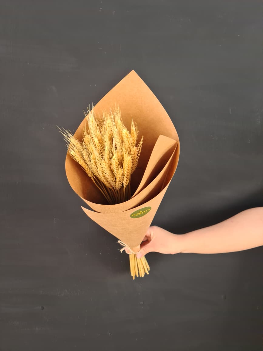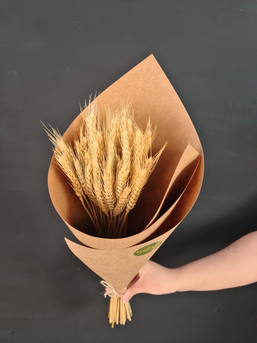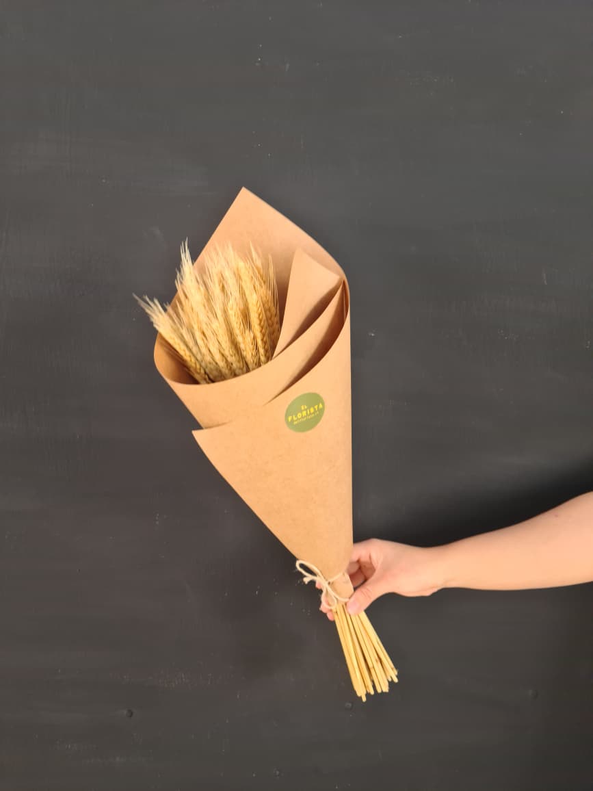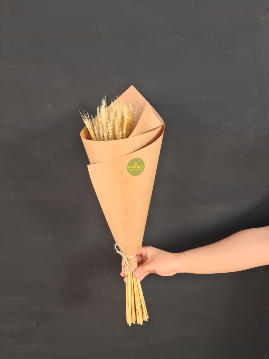 Precioso ramo de trigo atado en espiral, listo para usar en tu jarrón favorito.