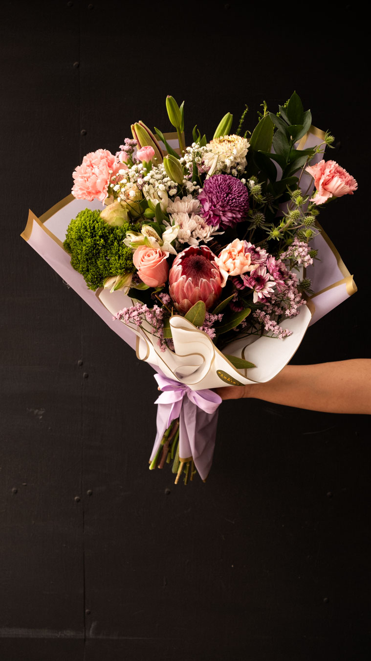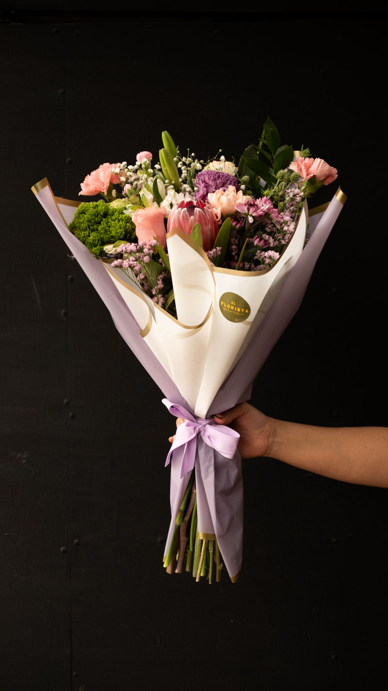 Nuestra versión más amplia y generosa en delicada paleta de colores rosada, un ramo que combina la elegancia de las flores premium con texturas silvestres que aportan movimiento y frescura. Es la forma más dulce de decir “gracias mamá por todo”.