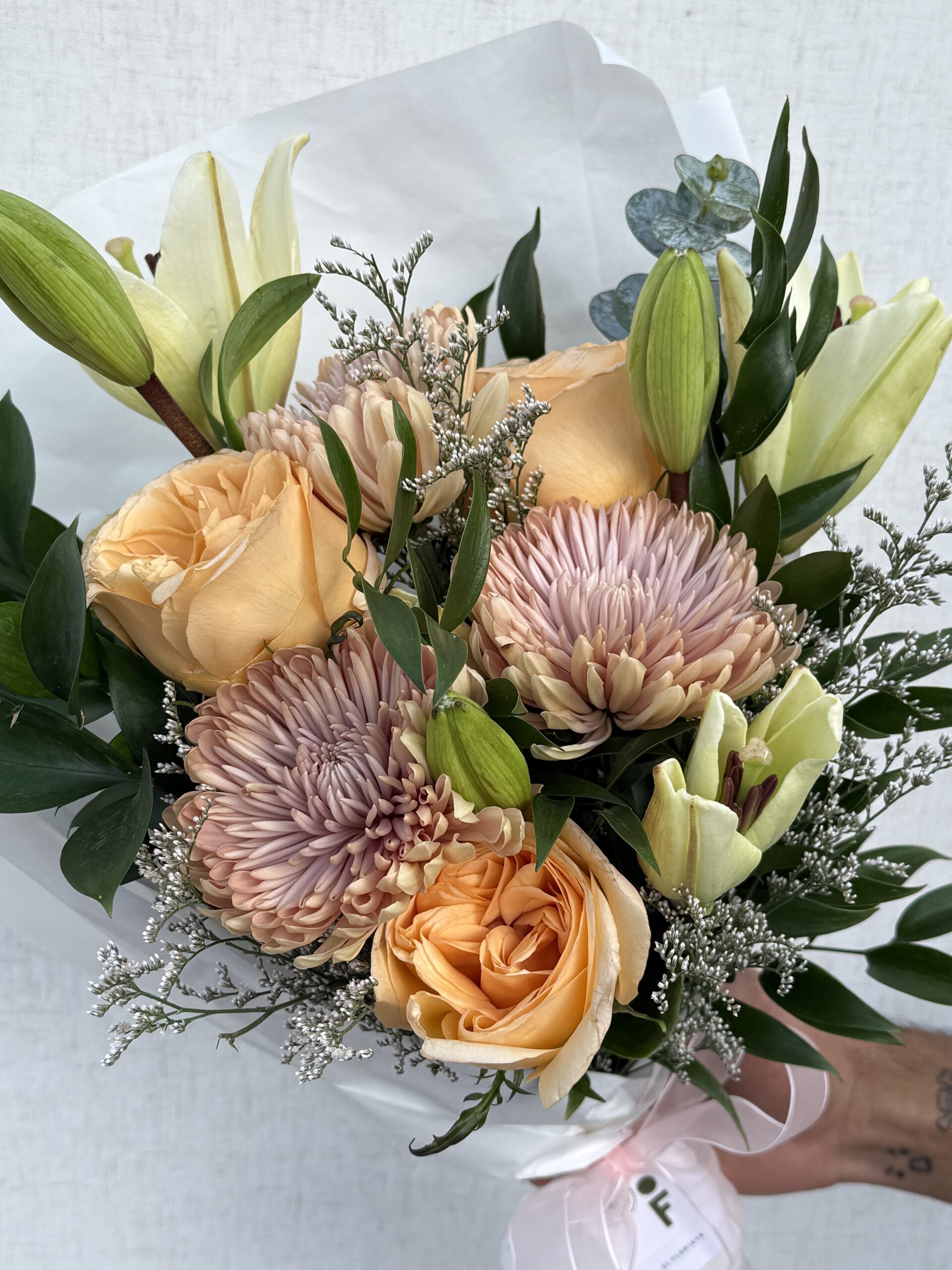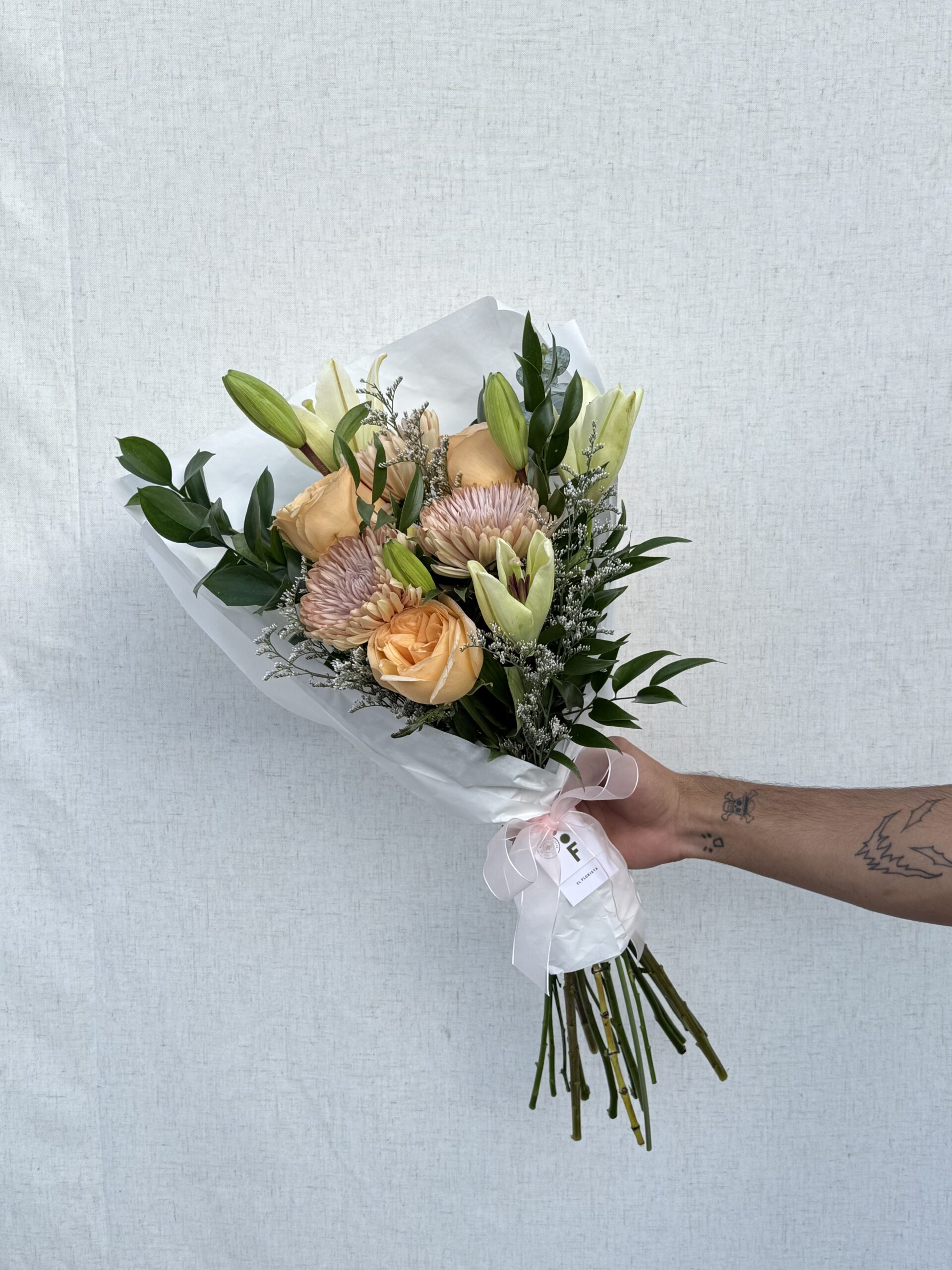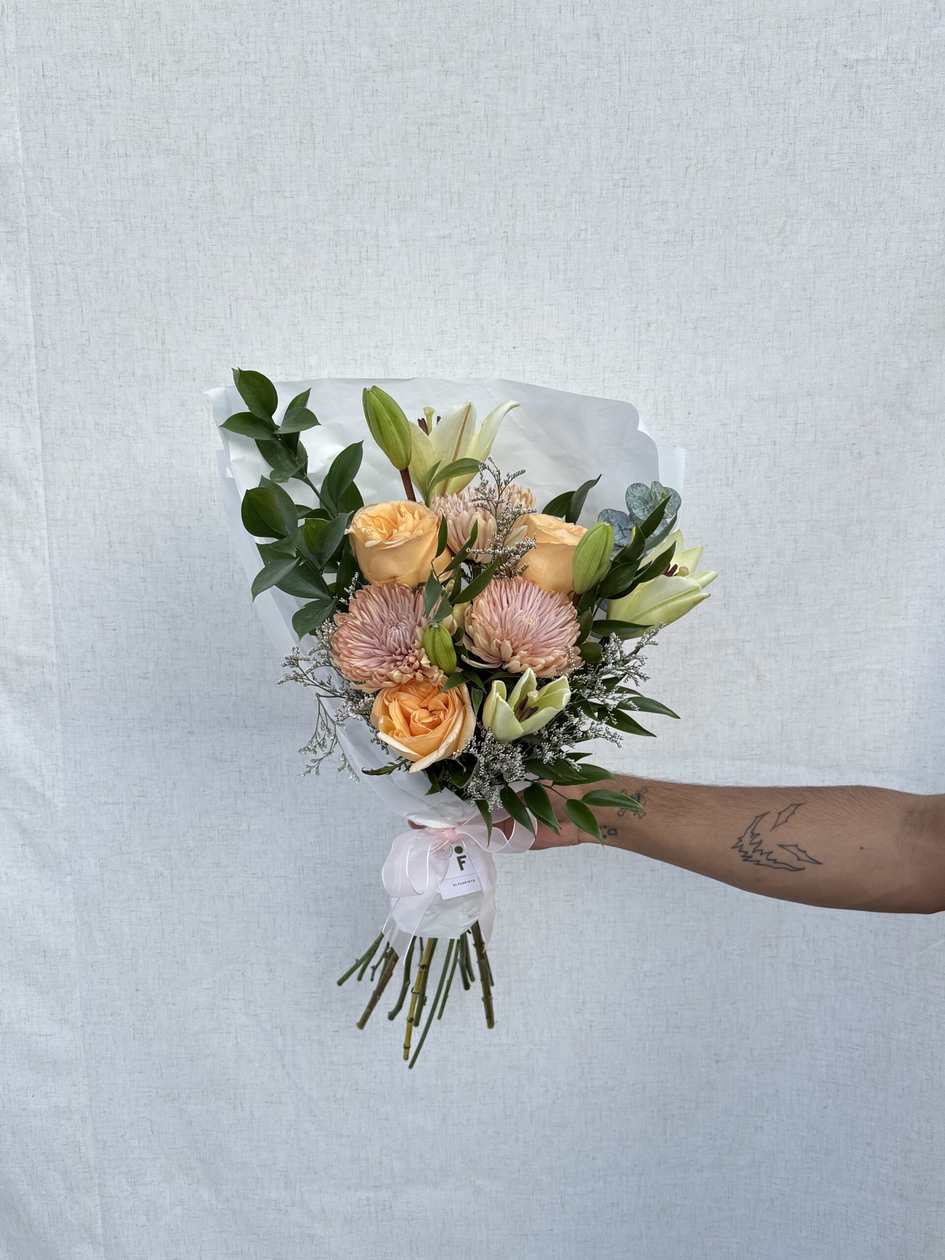 Un ramo de flores inspirado en la estética coreana, suele destacar por su delicadeza, minimalismo, armonía de tonos suaves y detalles románticos. Algunas de las flores pueden variar, pero mantenemos la paleta de colores y estilo. Toma en cuenta que la foto es referencial.