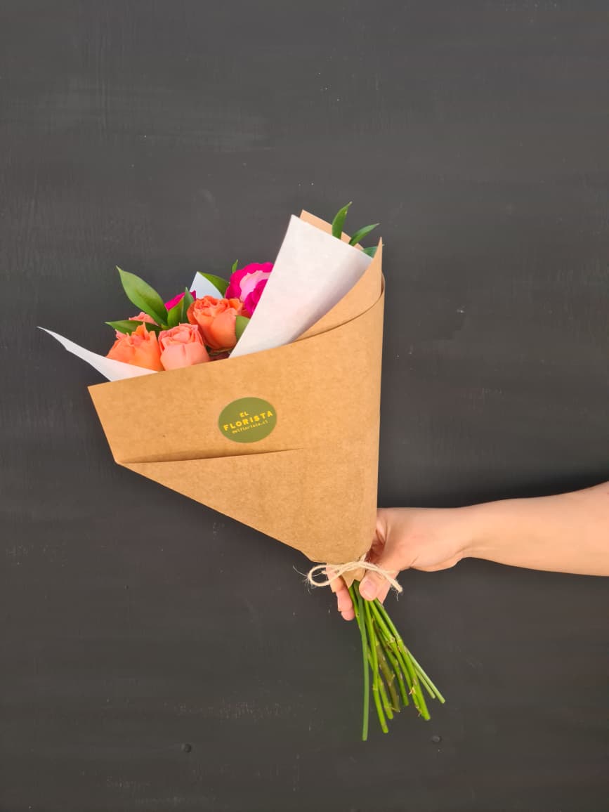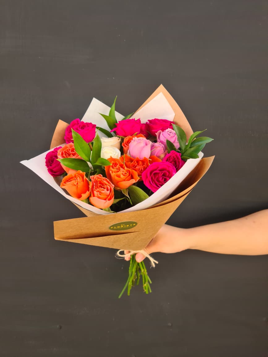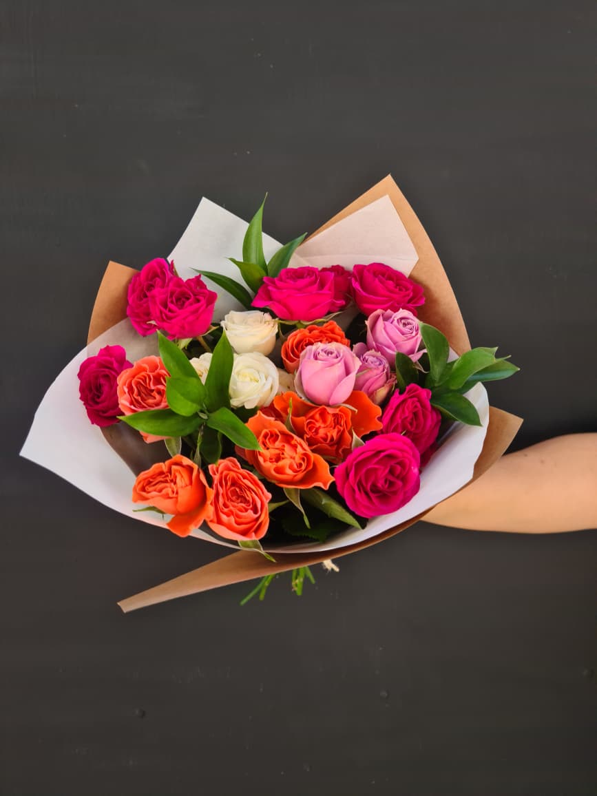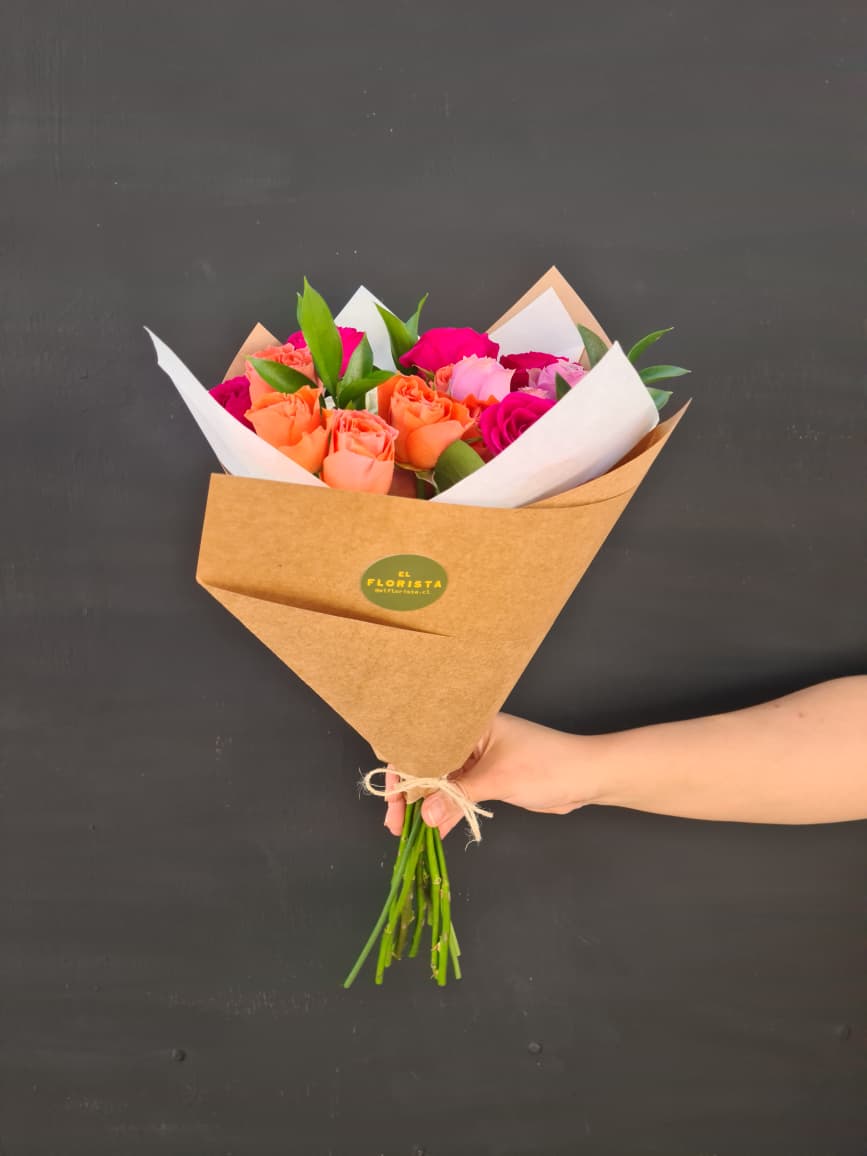 Precioso ramo mini rosas mixtas acompañado de follajes. Un detalle único y hermoso..!!